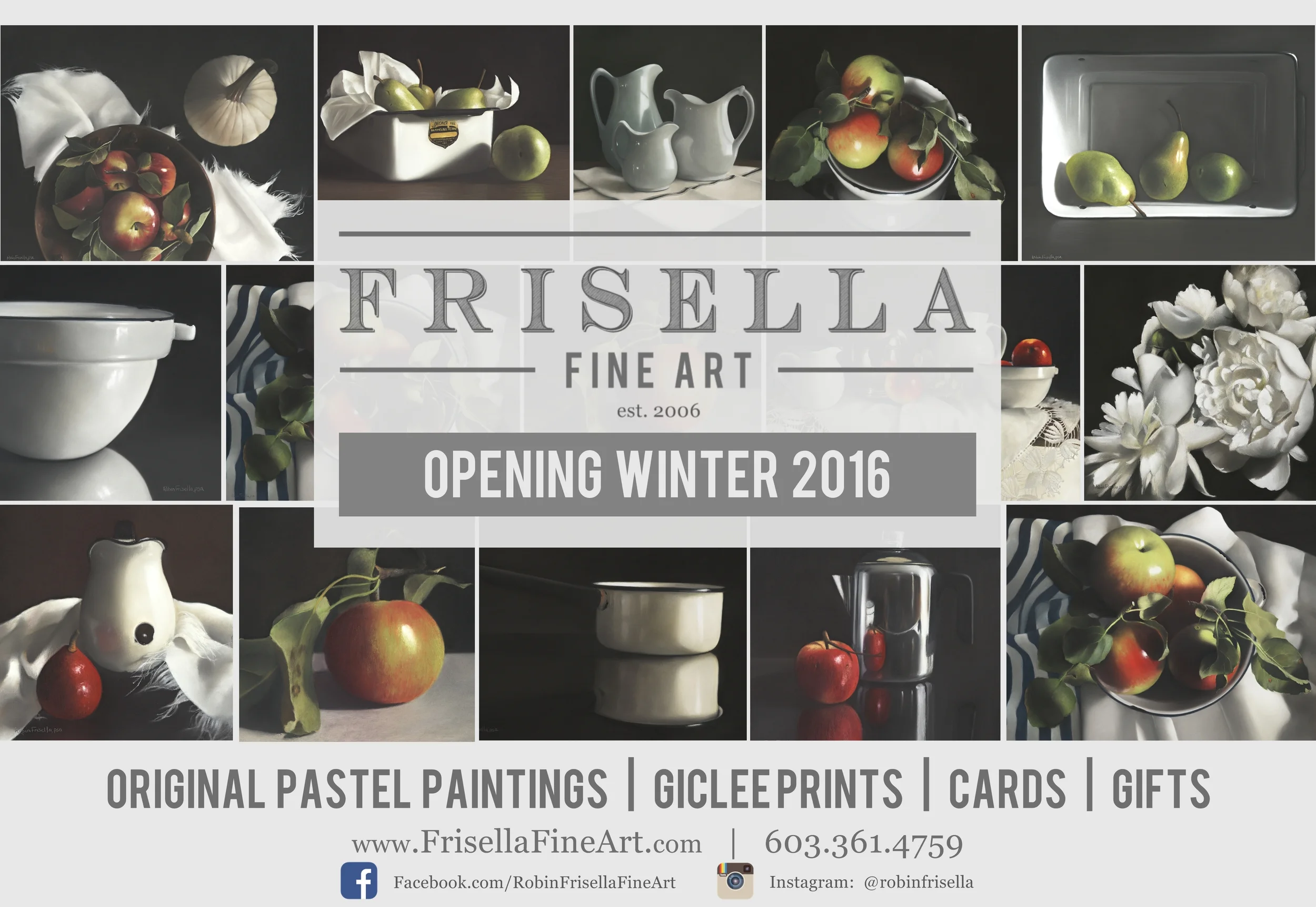 In January 2016, Frisella Fine Art is thrilled to celebrate 10 years with a move to a larger space at Shoppers Village in Hampton Falls on the NH Seacoast. The Gallery will be a nice compliment to the established businesses already in Shoppers Village; Lighting by the Sea, Fiddlesticks, and Prim Fashions among others.